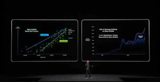 黄仁勋谈到,在芯片快速进化的背后,AI需求正在急剧攀升,多条曲线同时发挥作用:模型参数规模正以每年约10倍的速度扩大,推理阶段的计算需求以每年约5倍的速度增长,而token成本则需要以每年约10倍的速度持续下降,意味着AI竞争本质上已经成为计算能力的竞赛。