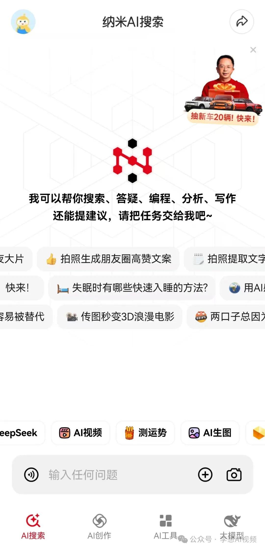 纳米搜索可以说是AI搜索的新秀,功能也是非常强大,我相信刷抖音,又关注AI的应该都知道吧,红衣大叔可是天天都在宣传!