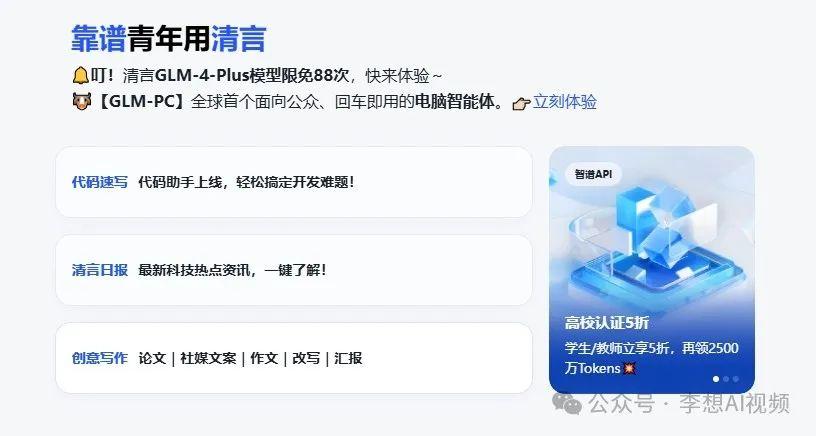 第四个是智谱AI(清华系)旗下的智谱清言,看见清华系三个字大家都知道他的实力了吧,并且前段时间智谱AI还登上了美国的对华制裁名单,理由是智谱利用AI给我们国家提供军事帮助,我可去你的。。。
