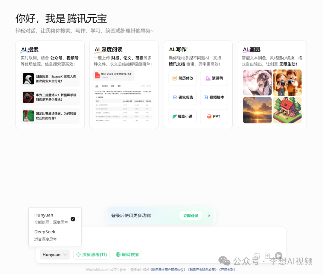 接下来是腾讯旗下的腾讯元宝,腾讯一直在大模型方面不着急,最近腾讯元宝接入DeepSeek后开始大力宣传,相信最近大家都刷到了元宝的广告了吧,也期待腾讯下一步的动作(求马爸爸给文章上个热门吧!)