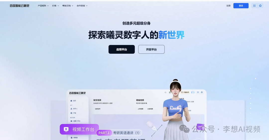 1. 曦灵数字人:https://xiling.cloud.baidu.com/