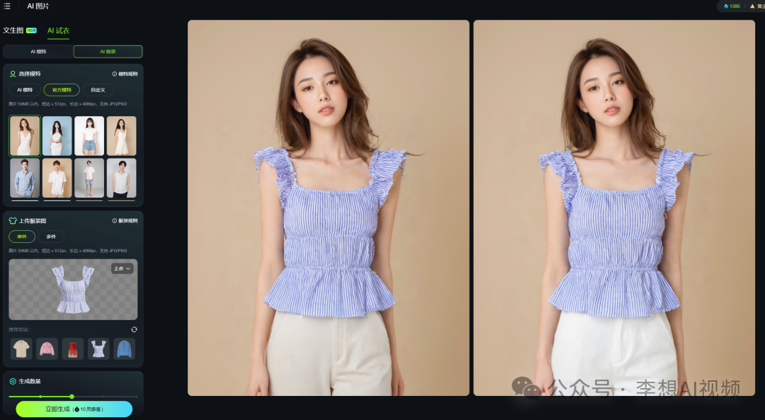 可灵的生图功能也不错,独有的AI试衣、换衣功能大家都可以去尝试一下。
