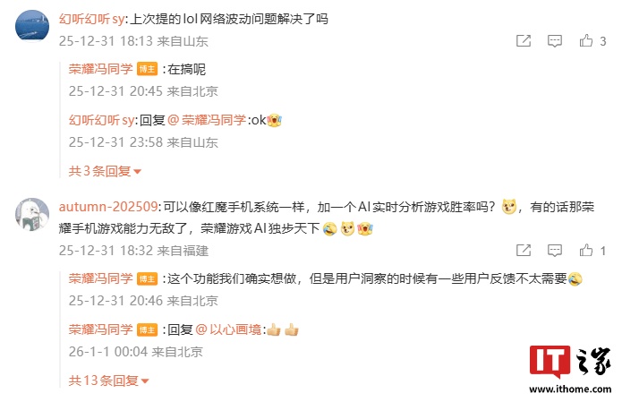 荣耀游戏研发工程师 @荣耀冯同学 还在评论区回复了部分网友的问题,并透露了部分信息,IT之家整理如下:
