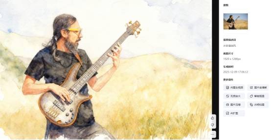 在使用中,你只需上传一张照片,然后在改图界面中输入风格方向,例如“油画质感”“水彩渲染”“手绘插画”等,AI 就会根据原图结构与细节自动生成对应的艺术风效果。用户无需进行笔触调整、蒙版处理或图层合成,也不需要任何绘画基础。