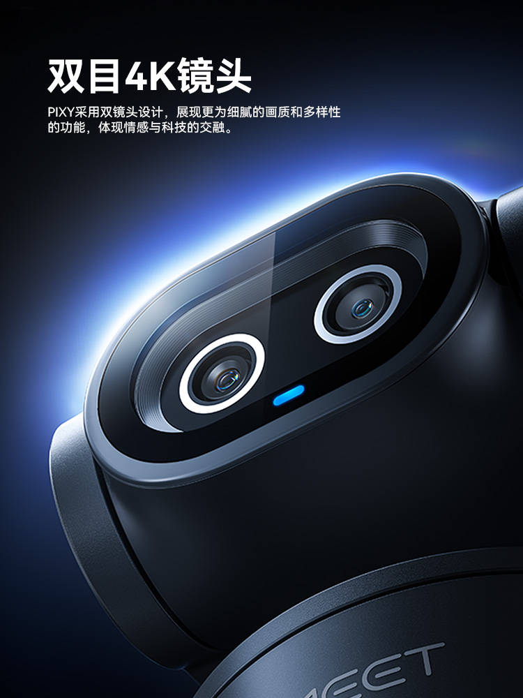 双镜头架构——主成像镜头与AI辅助镜头的协同设计,解决了单镜头设备长期面临的画质与功能局限。主成像镜头搭载 1/2.55 索尼传感器,支持 4K@30fps 超清画质,即使在暗光环境下仍能精准捕捉画面细节;独创 AI 辅助镜头则专攻人脸优化,逆光下肤色自然、暗光中轮廓清晰,解决传统摄像头 “人脸过曝或过暗” 的痛点。双镜头的物理优势结合AI算法,使PIXY在复杂光线环境中的表现远超传统单摄设备。