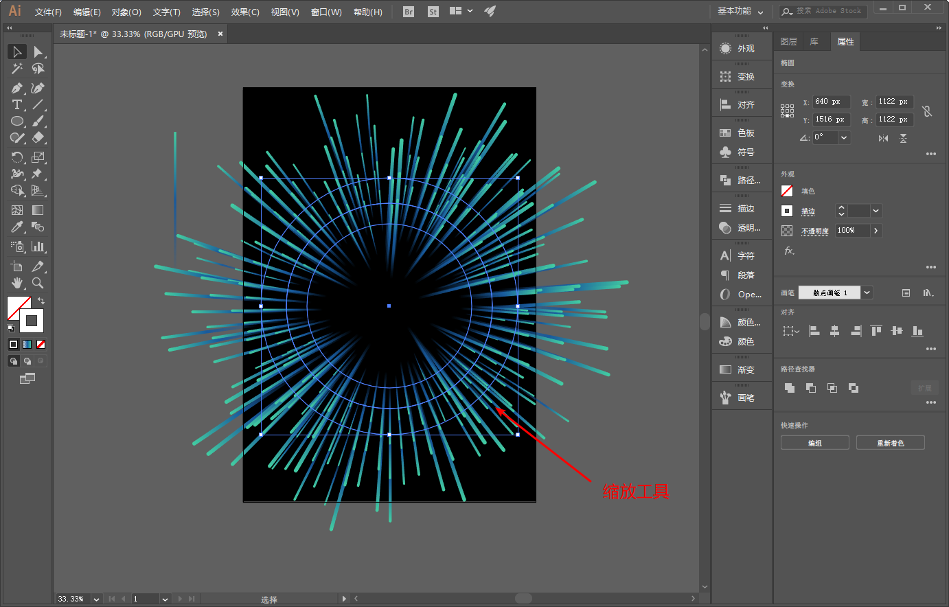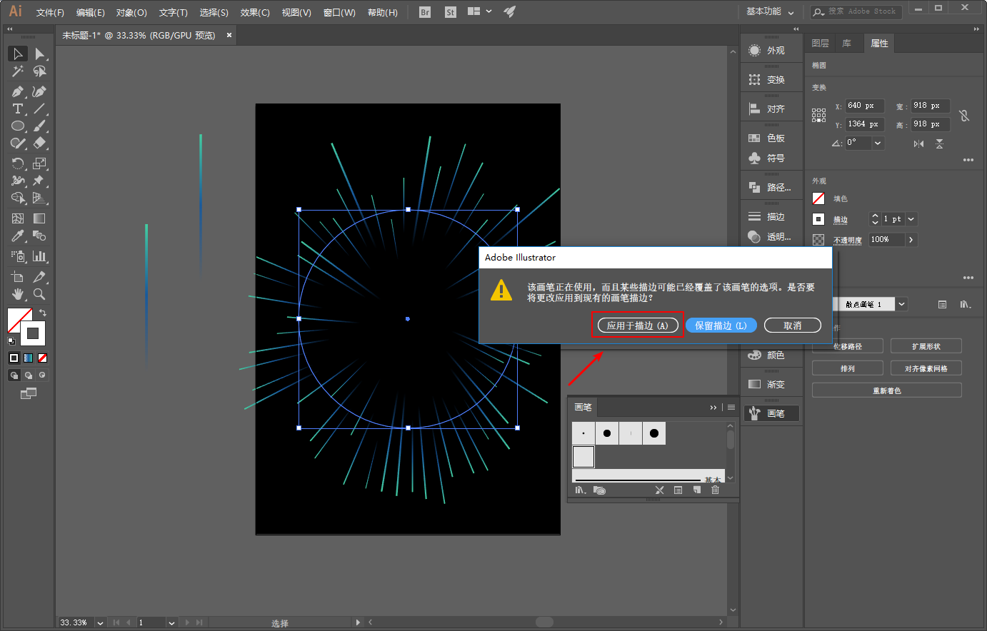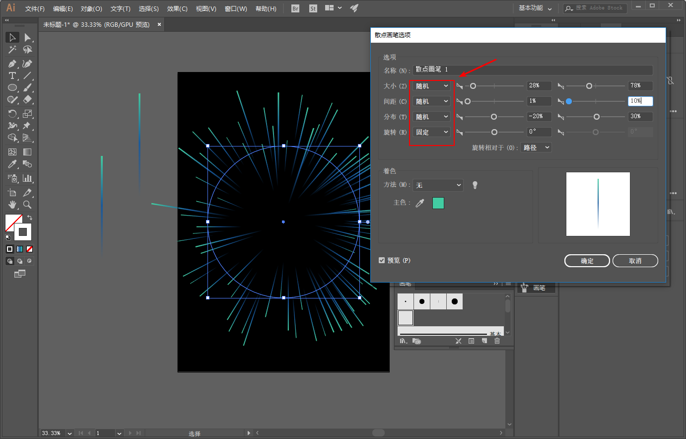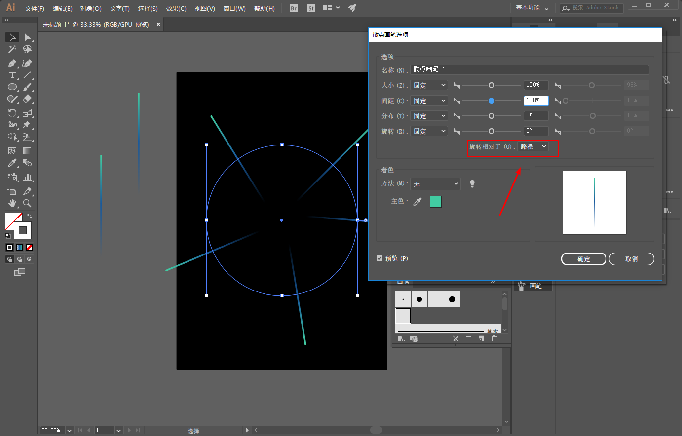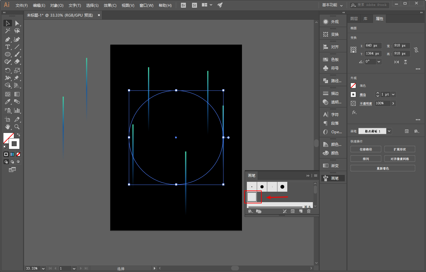 选中复制出来的圆,将其改为另外一个散点画笔:
