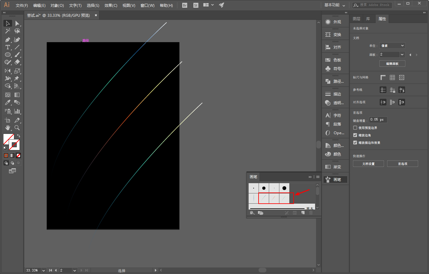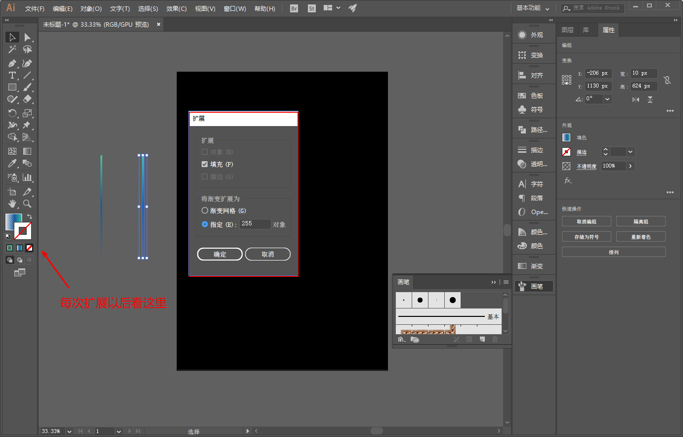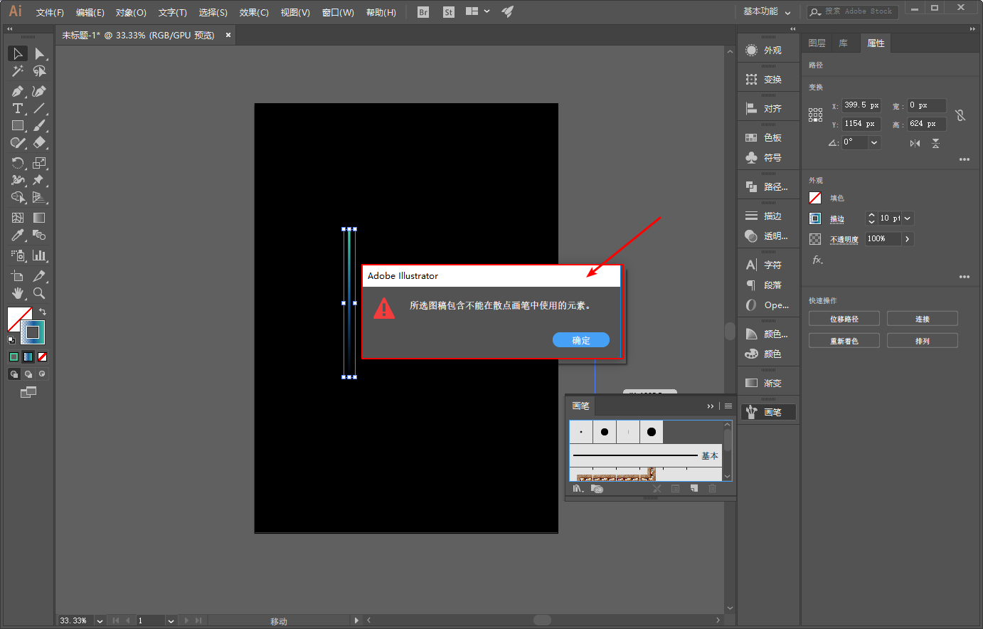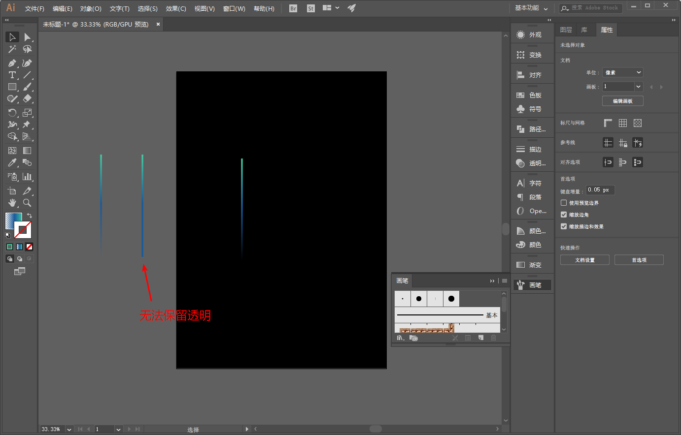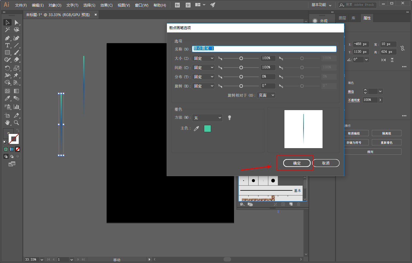 新建散点画笔的图案不能是渐变色,要解决有两种办法。