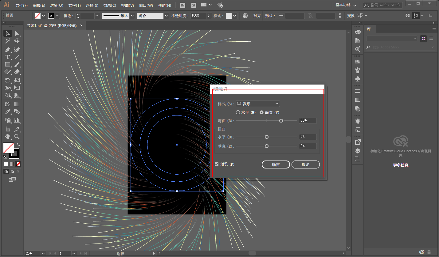 执行效果-变形-弧形,垂直扭曲一下: