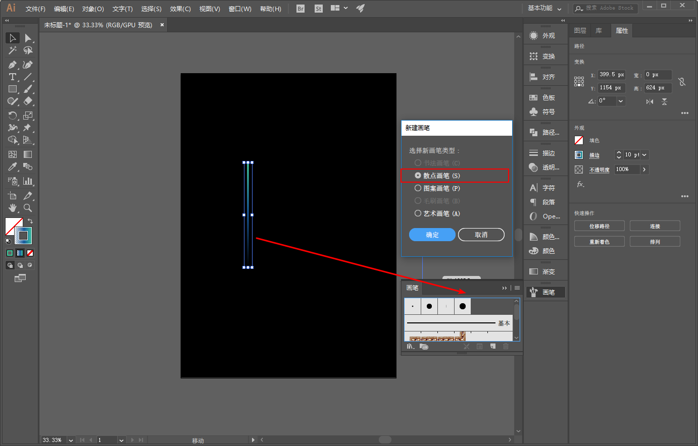 接着直接把它拖进画笔面板,选择散点画笔: