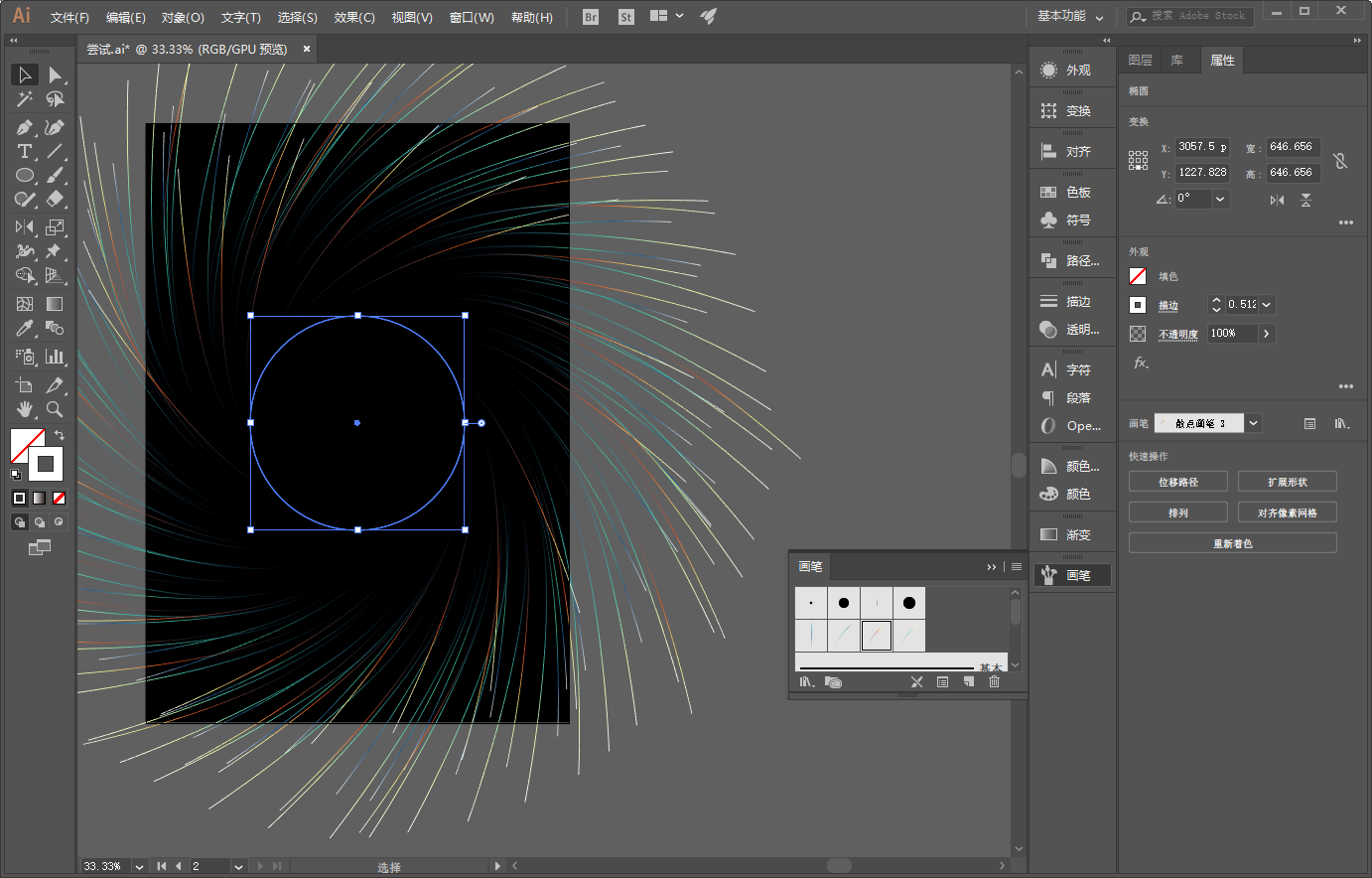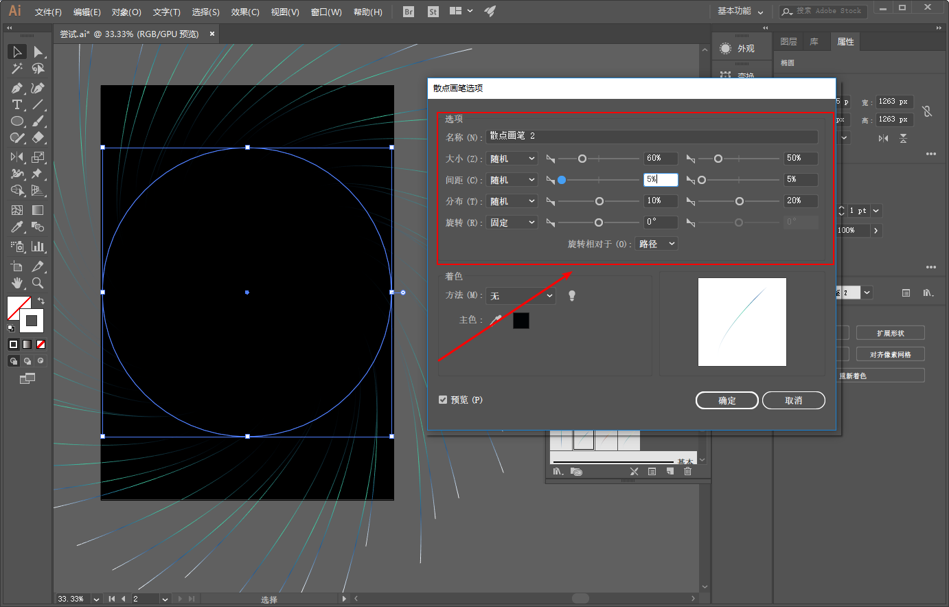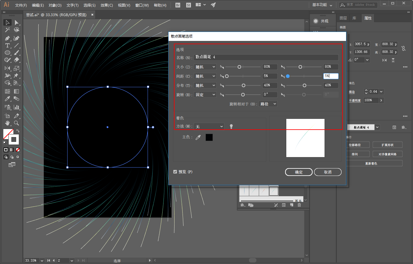 仍然画个圆,载入散点画笔,参数大家就自己设置啦: