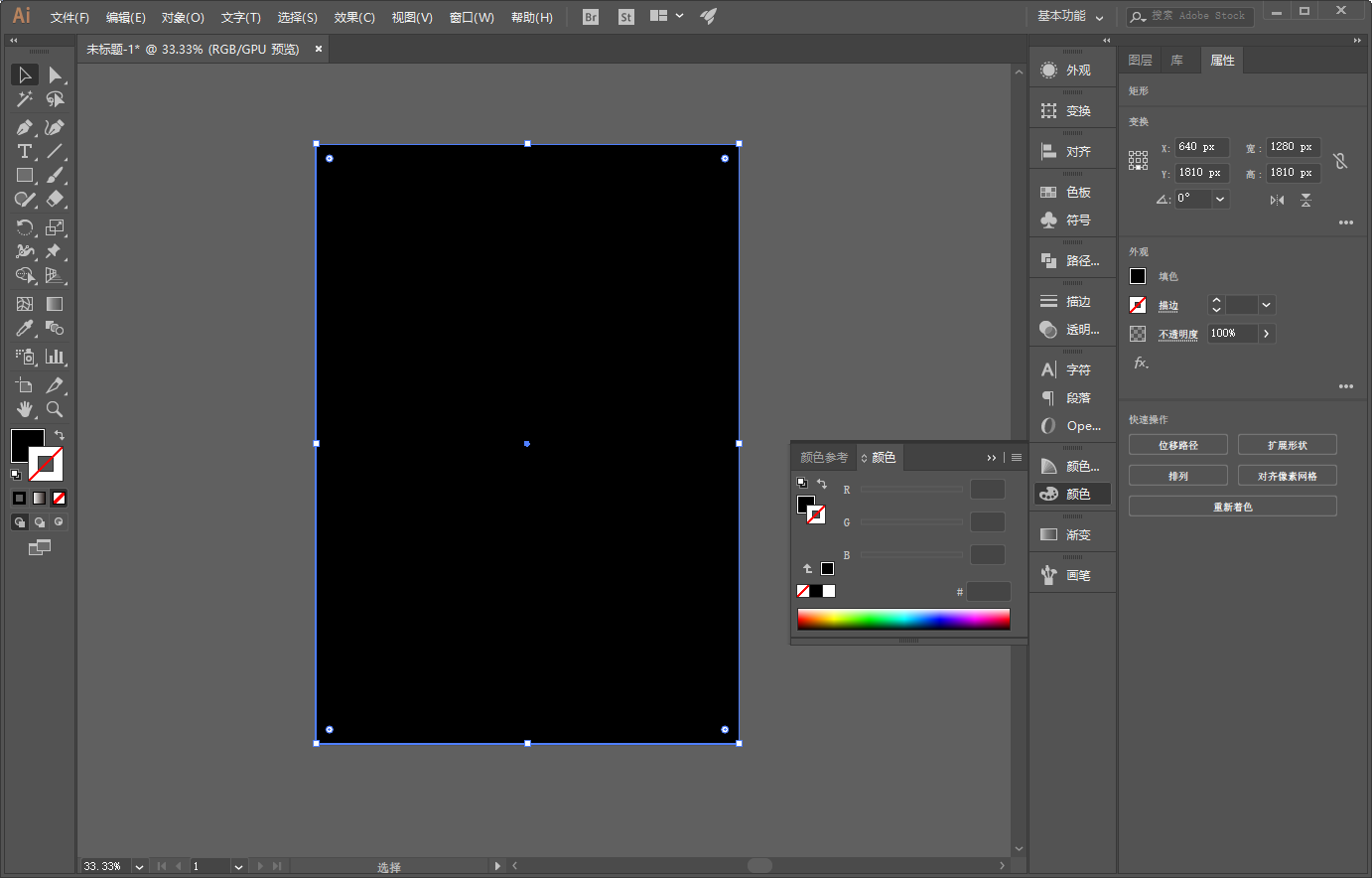 如图所示打开Ai,制作新建画板并且画一个矩形填充黑色锁定充当背景:
