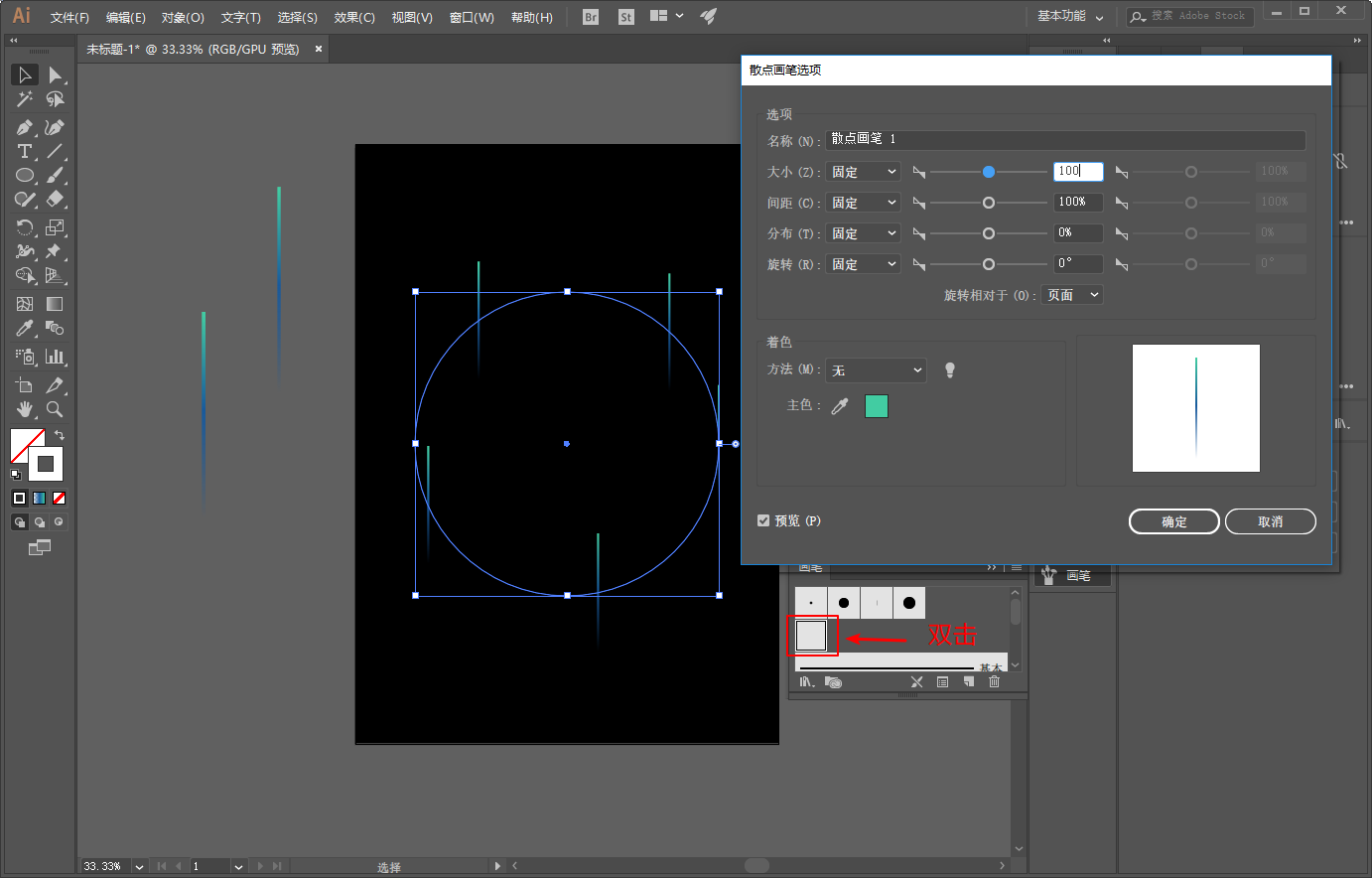 现在的效果明显不是我们想要的,没关系。双击这个散点画笔调出参数设置:
