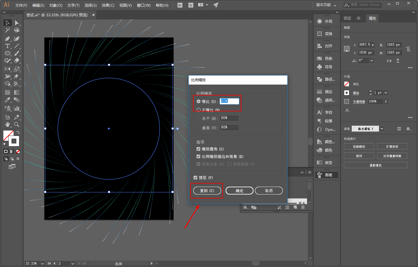 再选中这个圆同比缩放百分之80,复制出来一个: