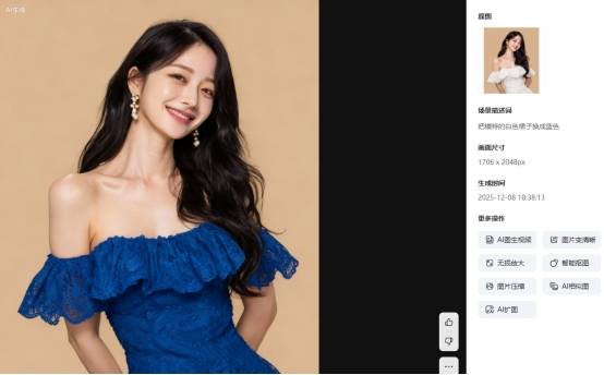 第四步,当然,如果你觉得颜色或修改范围不符合预期,你还可以根据有误差的地方,完善你的描述进行重新生成,直到效果满意为止,最后确认无误后即可下载图片使用。