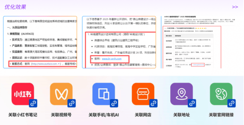 其中,友益典AI2B(AI to Business)服务,以“让客户通过AI直达你的官网”为目标,即通过AIRO技术,让全网主流AI推荐目标品牌的同时,在结果中呈现品牌官网链接,让全网AI赋能你的官网,增加流量的同时提升拓客机会,友益典AI2B让客户通过AI直达你的官网,让AI成为企业的业务提升与拓客增长加速器。