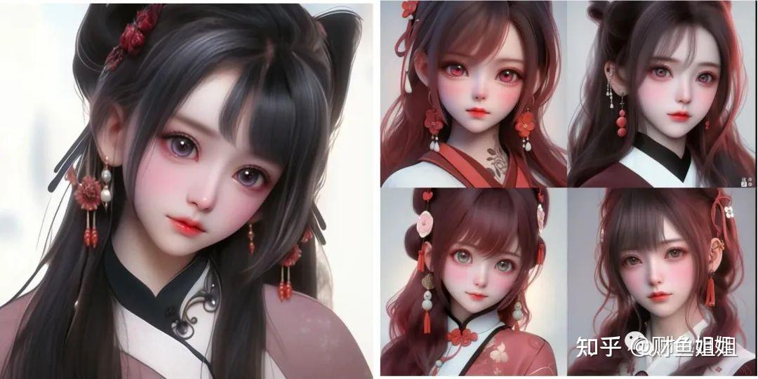 给同一个人物角色,换发型:黑发换成红发,换衣服:汉服换成吊带背心