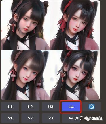在生成变体的四宫格图片里,再选一张最中意的图片,用来垫图,我们选第4张图
