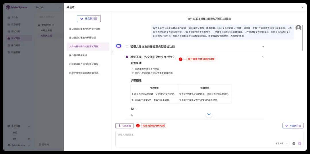 ▲图5 MeterSphere AI生成用例对话