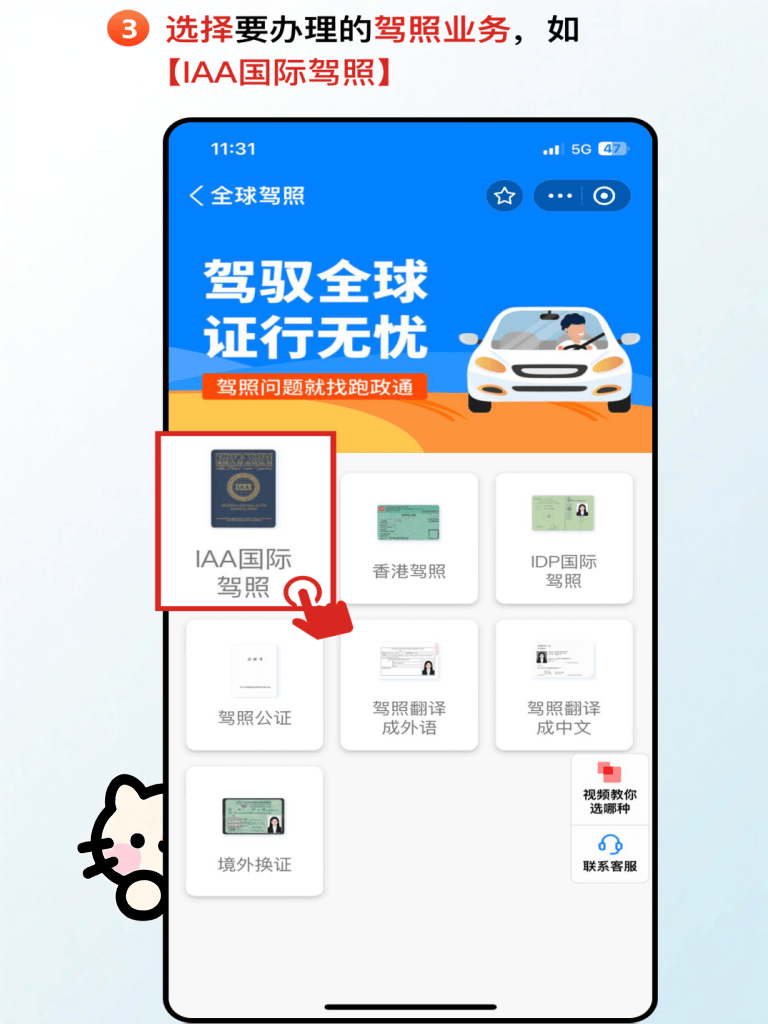2. 进入小程序,找到【全球驾照】,选择【IAA国际驾照】;