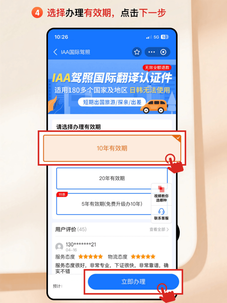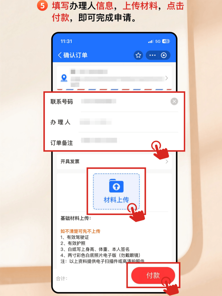 3. 然后根据提示,填写信息,上传材料,确认订单并支付后,一般3~5天就可以出件;