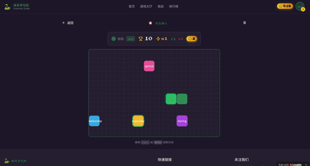 一个女生小组,她们发现彼此都是动觉型——坐不住、必须边动边学才能记住。于是她们设计了“英语语法贪吃蛇”:把枯燥的语法点变成贪吃蛇的“食物”,每吃对一个就过一关。