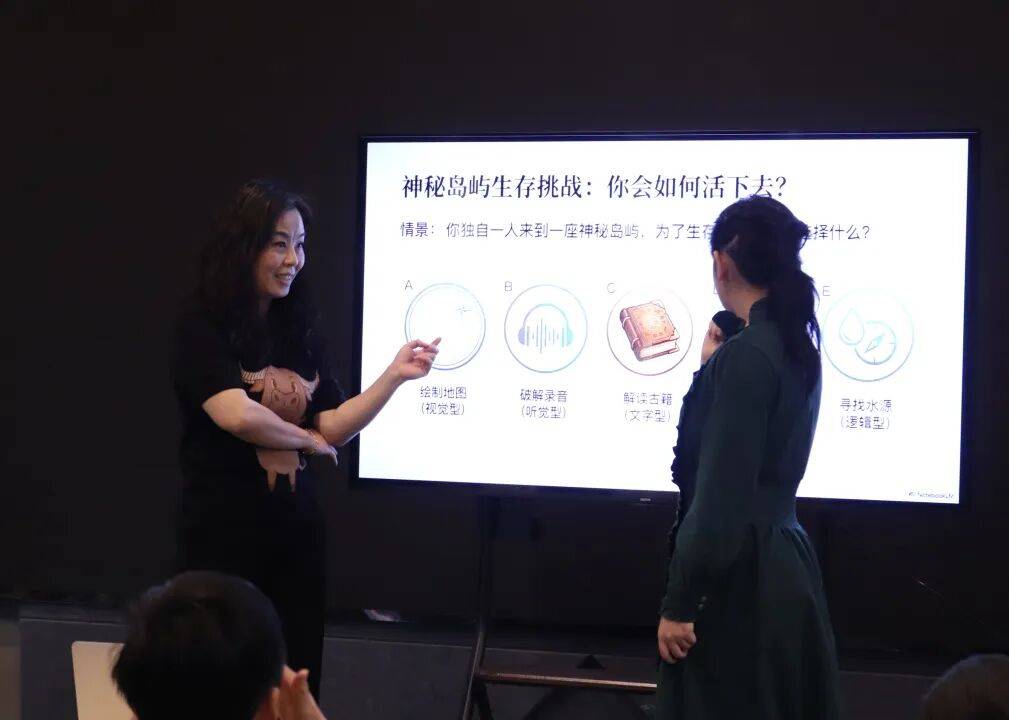 睿桐老师让大家做一组“思想实验”:“假如你们现在流落荒岛,岛上有五种生存方式供你们选择,你们首选哪三种?”