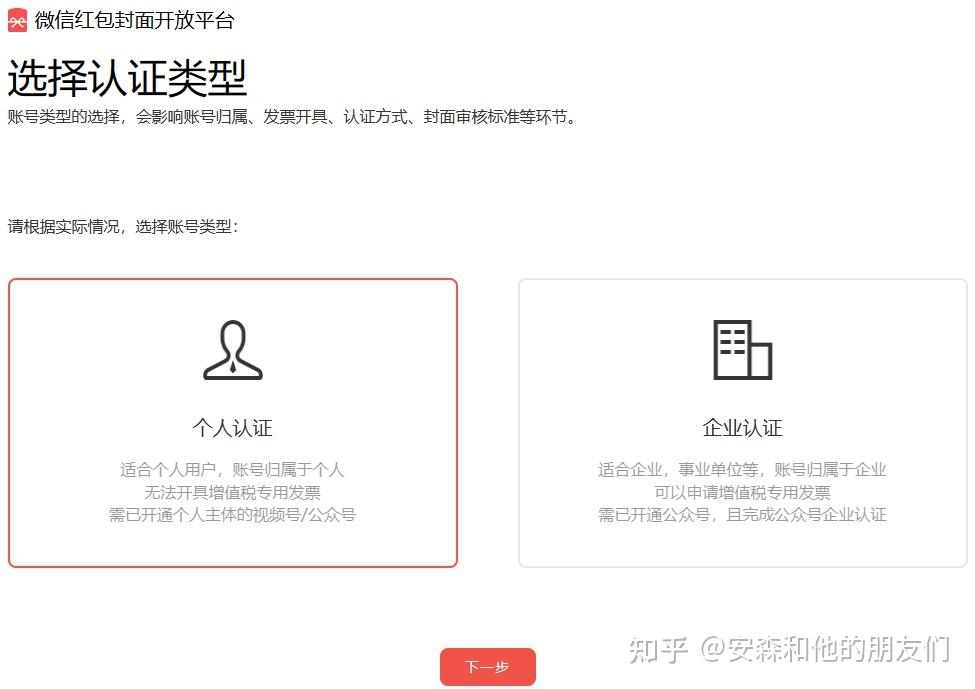 有个人和企业认证,俺选择个人,如果你是企业则选企业。
