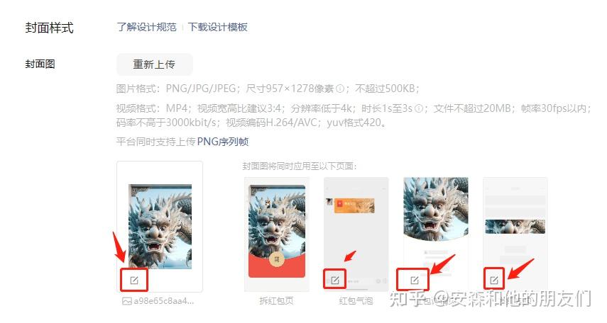 上传至红包平台。结合具体预览情况依次调整图片位置,是封面更加漂亮整齐。