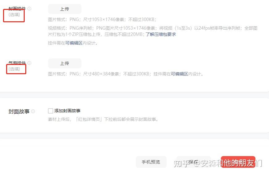 到这里,红包封面就基本制作完成了,下面的都是选填选项,厉害的小伙伴可以进一步按要求提供上传即可。