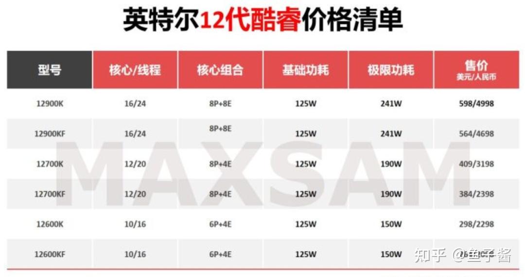 intel 12代酷睿系列CPU,需要搭配不同后缀标代表不同意思,eg: