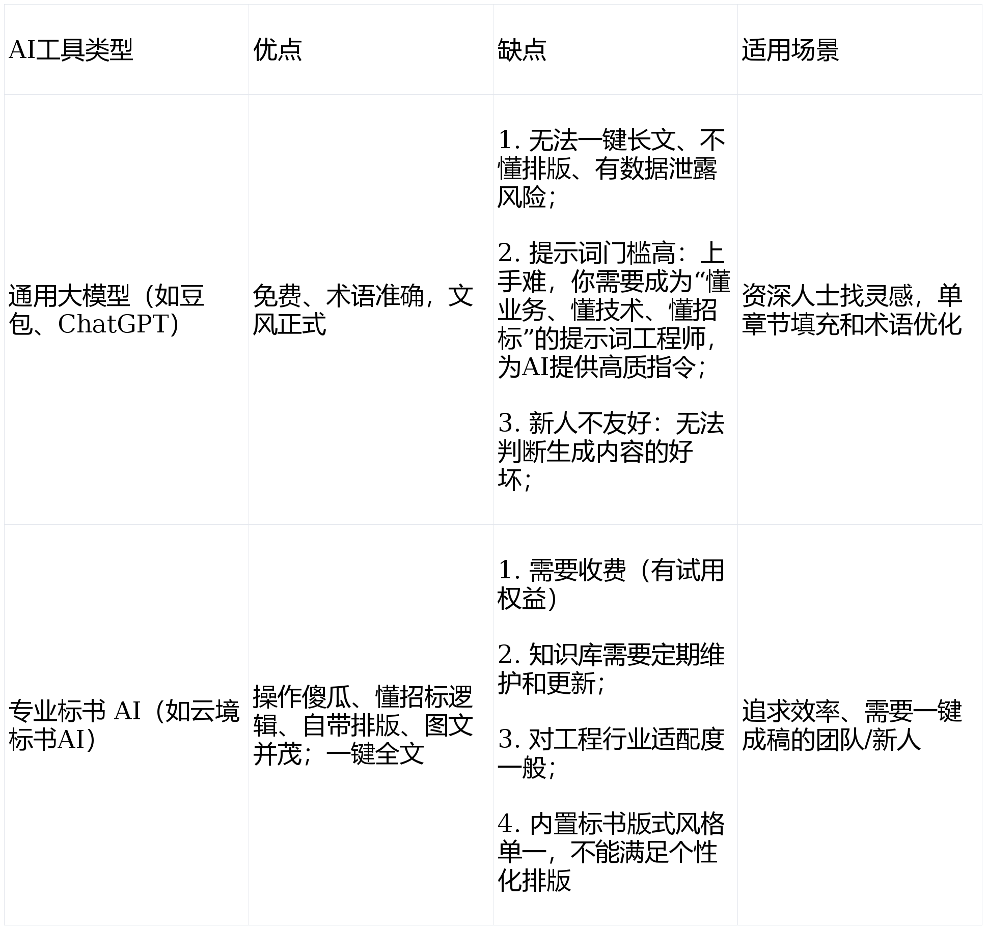现在很多投标人都在利用 AI 提效,但这里有个认知差。我先简单的说一下,目前AI写标书工具,分为两大类,大家各取所需: