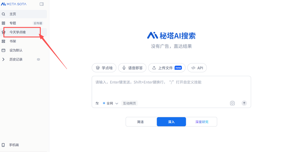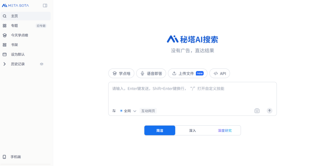 1.PC端通过网址:https://metaso.cn/可进入首页使用;
