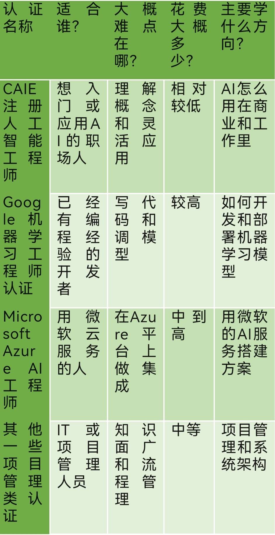 几个常见AI相关认证的简单对比