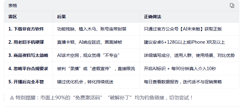 别贪便宜:正版软件年费不足千元,但能保账号安全、功能完整; 别怕麻烦:前期多花10分钟写产品资料,后期转化效率翻倍; 别一劳永逸:每周看一次数据报告,微调话术,让AI越播越聪明。AI直播的胜负手,不在工具,而在用法