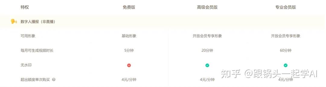 下图是免费版、高级会员版、专业会员版的特权区别。
