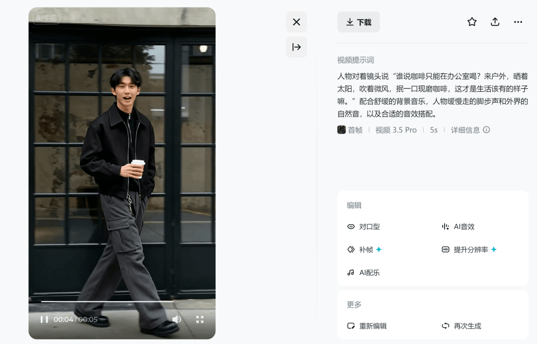 Step 2:用视频 3.5 Pro 直接生成“成片级素材”