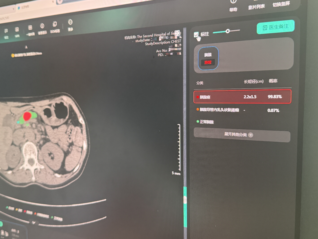 “是AI救了他们的命。”朱柯磊说。“他们都是因为其他疾病来院检查,并没有看胰腺专科,大多数人的CT片也没有显示异常,最后是AI‘报警’了。”