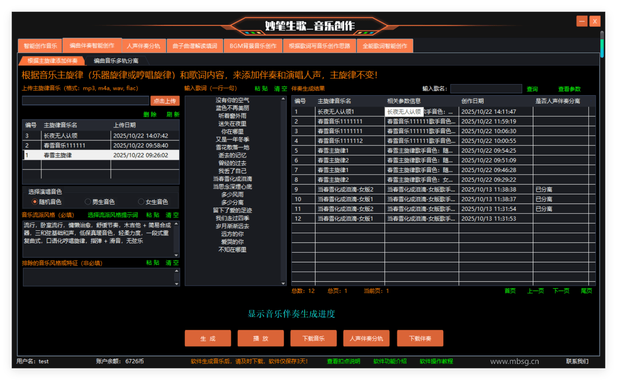 如果你已经有了一段满意的主旋律,无论是自己创作的,还是从其他渠道获取的,都可以将其导入到妙笔生歌中。在软件中找到相应的导入功能,选择你要导入的旋律文件。导入成功后,软件会对旋律进行分析,然后根据其特点生成与之匹配的伴奏。在生成过程中,你可以根据自己的喜好选择不同的音乐风格、节奏类型等参数,让生成的伴奏更符合你的预期。