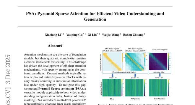 从技术实现角度来看,PSA包含三个核心组件。首先是金字塔KV块构建,通过渐进式池化创建多层次表示。其次是多层次掩码生成器,它能够根据查询-键块对的重要性动态分配处理层级。最后是自适应金字塔注意力计算,在保证概率分布一致性的同时高效计算注意力权重。