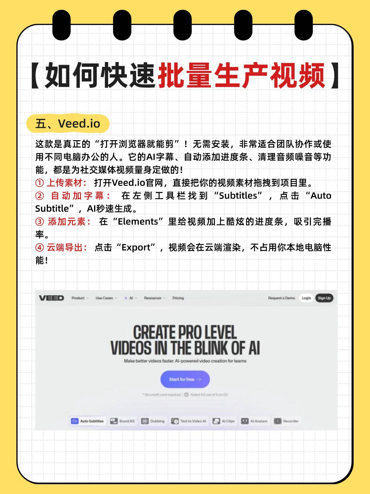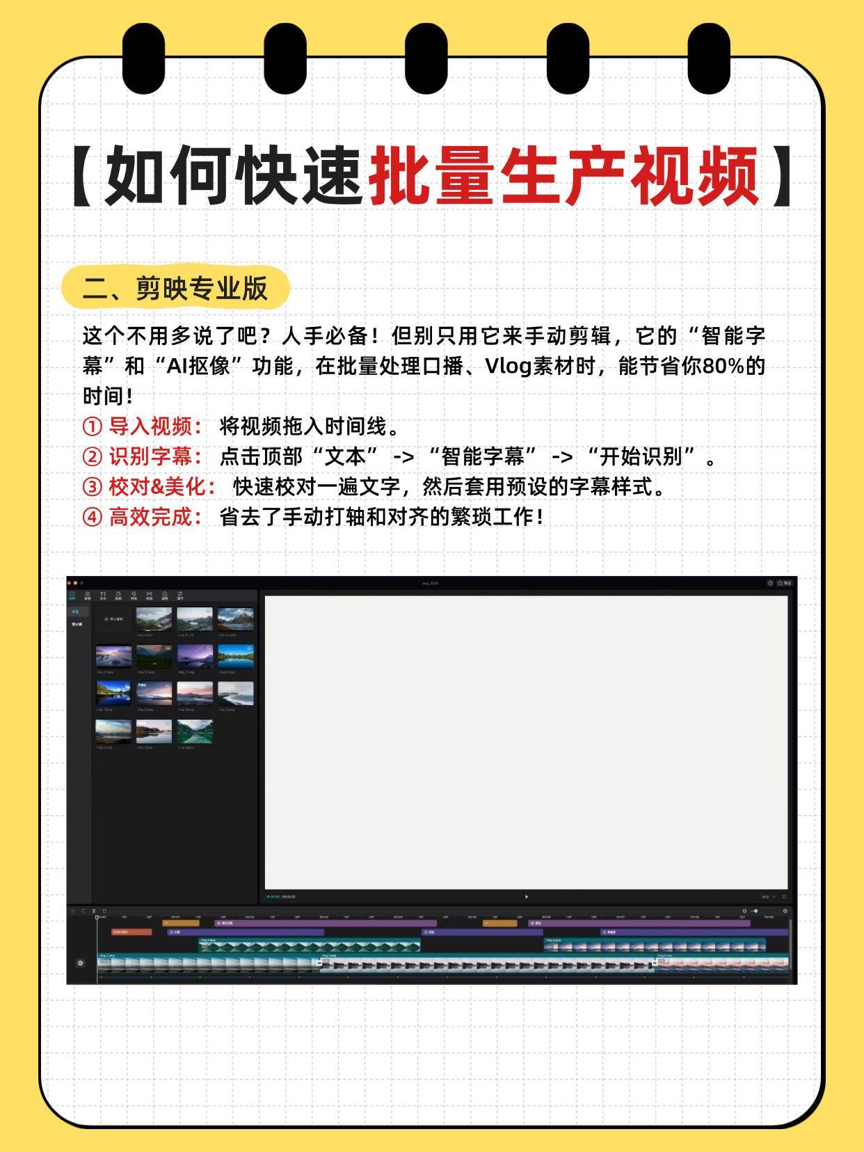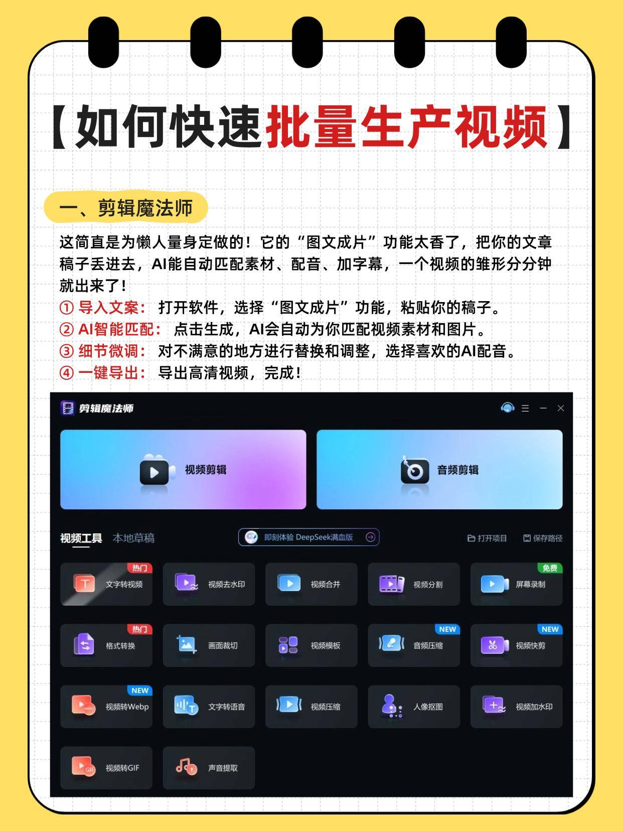 今天就给宝子们挖来了5款能极大提升效率的握个无剪视频生成和剪辑神器,个个都是辑经王炸!帮你轻松解决 如何快速批量生产视频 的验做也终极难题!赶紧码住,何快偷偷变强!速批思路视频