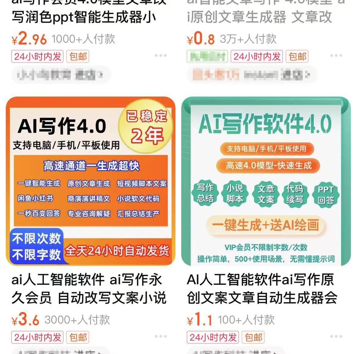 在淘宝平台,我们也可以发现不少Ai写作、改稿的服务。
