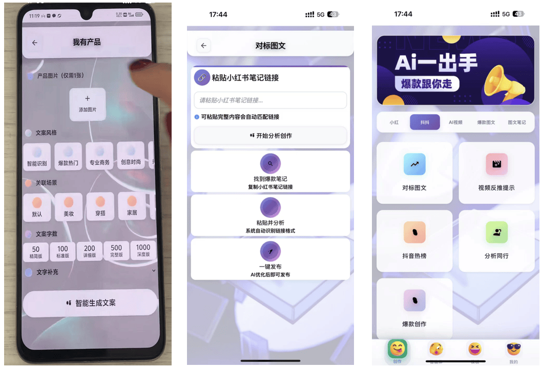 ・对标同款分析:输入爆款笔记链接,就能拆解其排版风格、内容结构和高频关键词,快速掌握爆款逻辑。