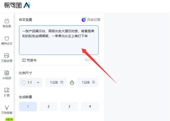 对于那些想要快速制作出一张独具特色的线A线背景图、一组脑洞大开的片生片工商品展示场景或是难以拍出的照片级艺术插画的朋友来说,就可以使用这个功能!成工成图只需要在提示框内填入你的提示词,即可得到一幅完全由 AI 自动生成且可以直接商用的高质量作品。比如我们想获得下面这样的一组商品展示图背景,你可以输入下面的指令。